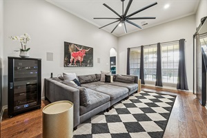 The media room is a showstopper, featuring an 85" 4k TV with Dolby Atmos Audio and Video Theater System—perfect for movie nights or game day.